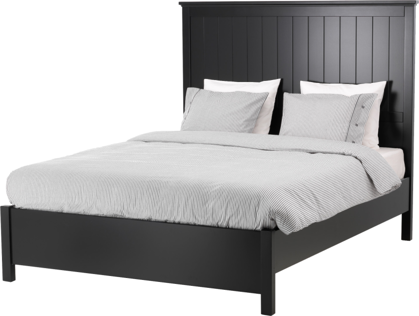 Black bed and gray bed sheet illustration, Bed frame Bed size IKEA Platform bed, bedding, frame, angle png