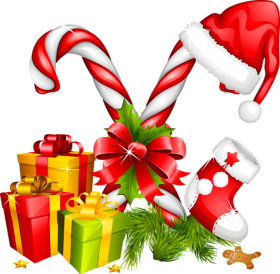 Christmas illustration, Santa Claus Candy cane Christmas decoration, Santa Hat Gifts and Candy Canes Christmas Decoration, fictional Character, flower png