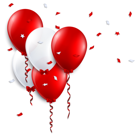 Red and white balloon and confetti, Birthday Balloons, love, wish png