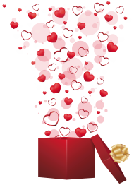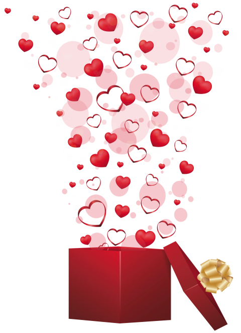 Valentine's Day Gift Heart, Red Gift with Hearts, exploding heart on open gift box illustration, love, wish png