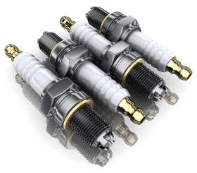 Four gray shock absorbers, Car Exhaust system Spark plug Motor vehicle Engine, Spark plugs, automotive, accessories png