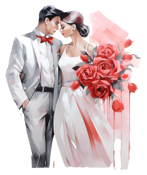 Wedding - Wedding Couple with Red Roses